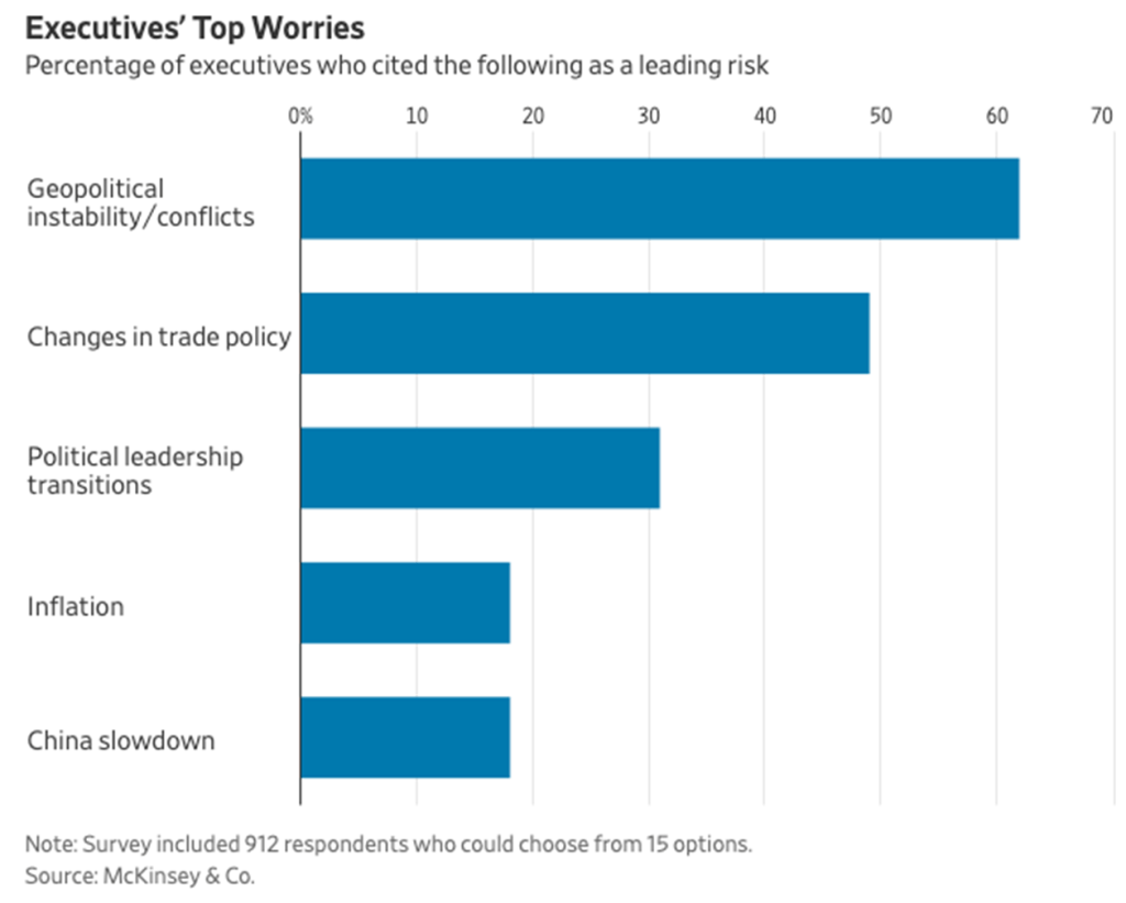 - Geopolitical conflict in Ukraine and the Middle East