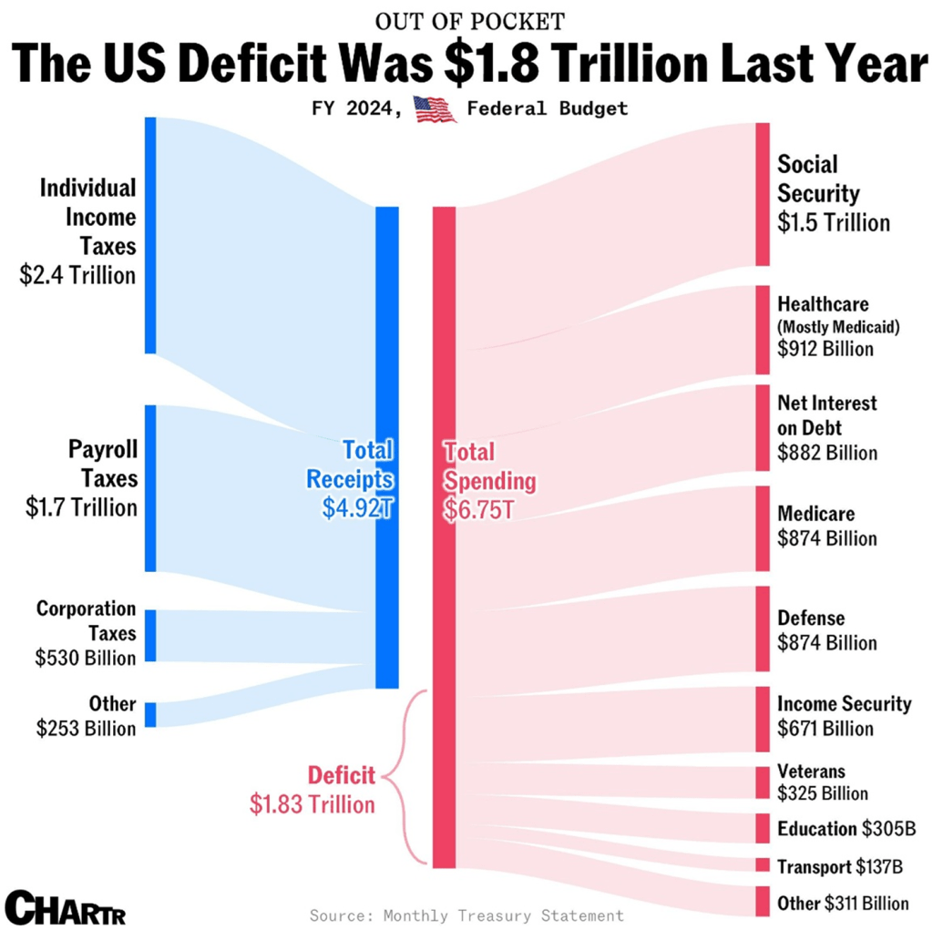 One counter to the “household credit card” analogy is that, unlike American citizens, the U.S. Government can literally print money. The U.S. borrows money by issuing Treasurys. Flooding the market with them drives yields upward as buyers demand higher rates for increased risk. Because Treasury yields anchor other forms of debt, this pushes up rates on mortgages, car loans, and corporate bonds. Higher cost of capital decreases the value of stocks, real estate, companies, and the entire economy. It is critical that we get this right. Over the long term, our inability to maturely manage our “credit cards” could irreversibly erode the world’s faith in the U.S. financial system.