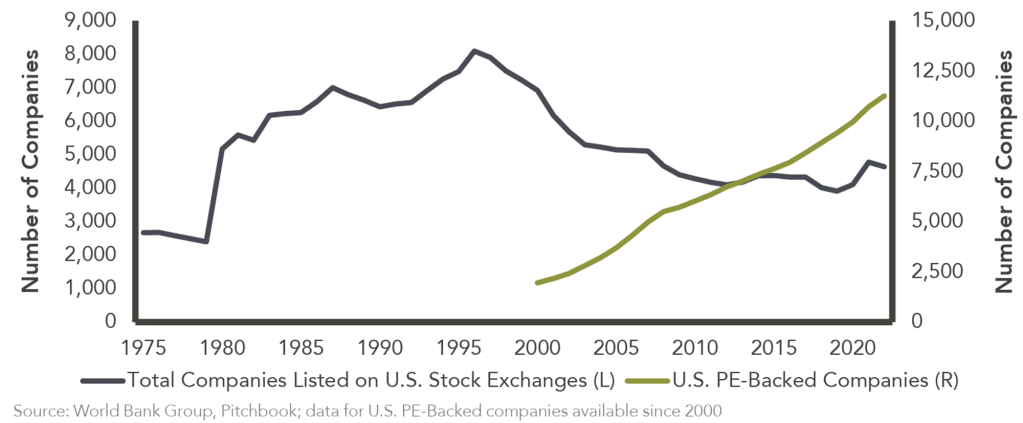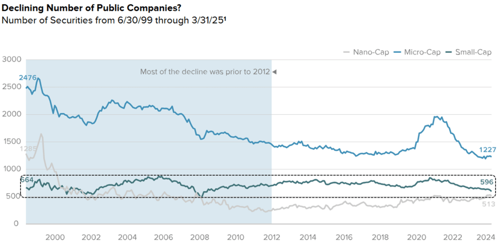 A recent narrative against investing in small caps is “the best small companies are now private,” with venture capital and private equity absorbing more of the pipeline that historically entered the public small-cap universe. It is true that the median IPO today is larger and more mature than in past decades, and the number of public companies has declined and private ones grown.